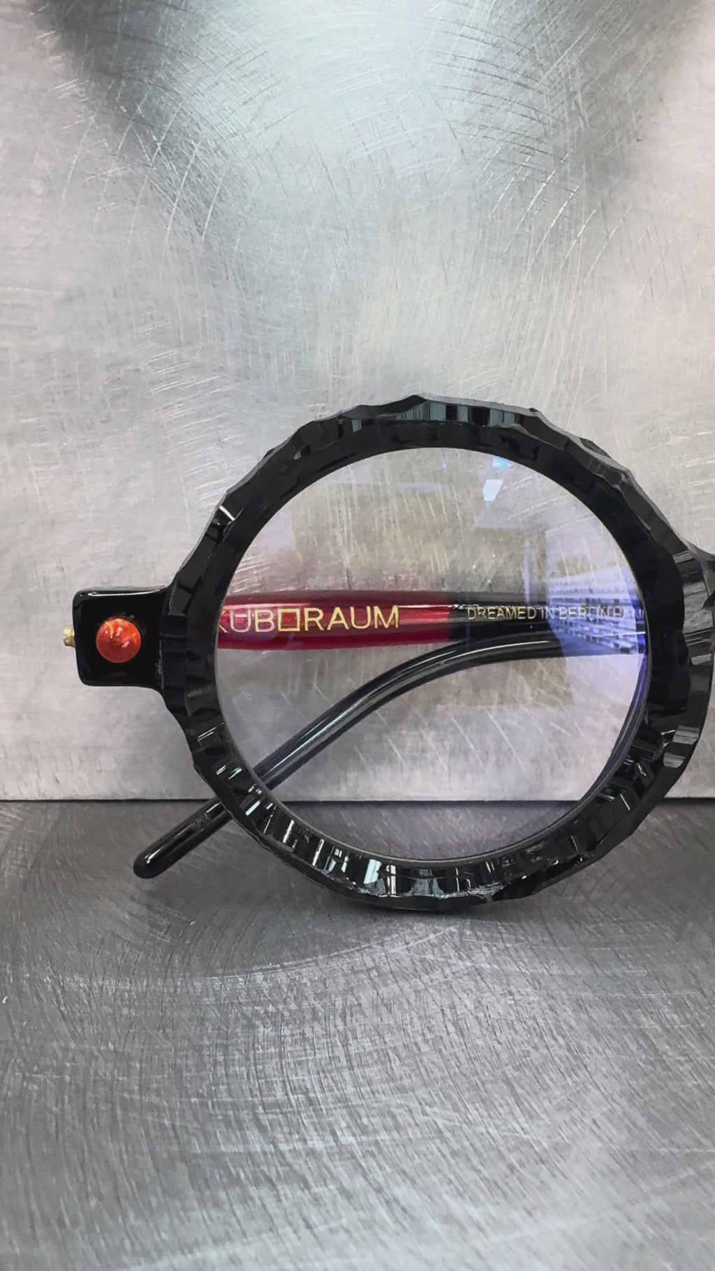 Osservando gli occhiali Kuboraum ci colpiscono i particolari di design che ci ricordano oggetti antichi, i dipinti delle antiche grotte rifugio dei nostri antenati, fusi, mischiati nel caratteristico mood Berlinese, assorbendo e trasmettendo tutto quello che la storia di Berlino può infondere ad un oggetto di design e scultura.